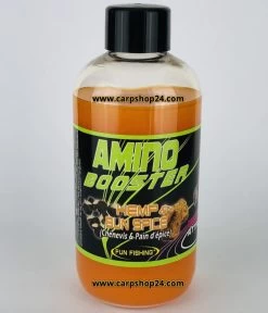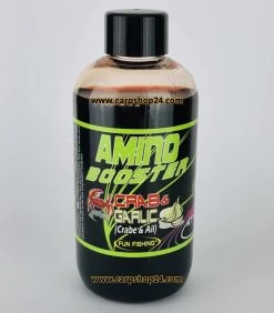 AMINO BOOSTERS zijn lokstoffen voor geleidelijke diffusie die een sterke aantrekkingskracht uitoefenen op de reuk- en smaakzintuigen van vissen. De fruitige versies zijn gemaakt van hightech oplosbare lokstoffen zoals N.H.D.C. of natuurlijke fruitextracten. De vleesversies zijn rijk aan oplosbare natuurlijke mariene extracten (krab, mossel, krill …) met een hoog gehalte aan vrije aminozuren. We kunnen je verzekeren dat onze boosters echt het verschil maken.