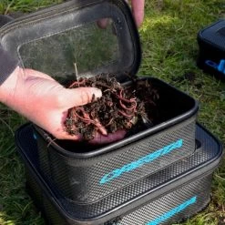 De EVA Accessoires Bait Bag Micro Mesh Small/Large is voorzien van ultra fijn mesh in het deskel, waardoor levend aas, zoals maden en wormen, van verse lucht worden voorzien en toch veilig opgeborgen zijn.