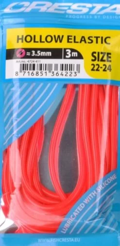 Dit hoogwaardige en slijtvaste cresta holle elastiek bezit een holle kern waardoor het rekpercentage ten opzichte van volle elastiek veel hoger is. De meerekkende buitenmantel is voorzien van een opvallende kleur, zodat de zwemrichting van een gehaakte vis goed zichtbaar is. Ook is hieraan de diameter te herkennen. Dit elastiek is zeer geschikt voor het gebruik in een pullerkit. Dankzij de toegevoegde vloeibare siliconen wordt een lange levensduur gegarandeerd. Cresta Hollow Elastic is verkrijgbaar in 11 verschillende maten van 1.3 t/m 3.5mm. Zeer geschikt voor zowel karper, witvis als voor de visserij op stromend water.