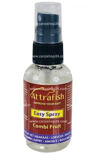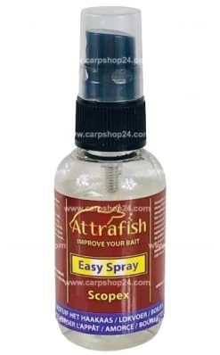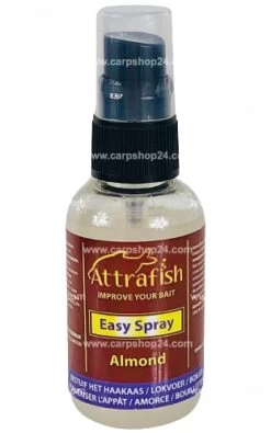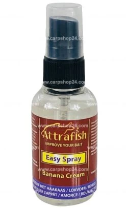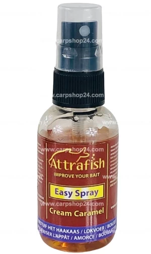 Attrafish Easy Sprays zijn hoger geconcentreerd in vloeibare toevoegingen dan de Bait Boosters, die bestemd zijn voor het bestuiven van allerlei haakaas. Met deze sprayflacons kan men ook voederkorven, kleinere porties grondvoer of boilies snel een extra stimulans geven. De Easy Sprays zijn uiterst makkelijk in gebruik en geschikt voor alle watertypes. Net als al de andere Attrafish additieven zorgen de sprays voor een hogere vangkracht dankzij de lokkende en eetlustopwekkende werking. Dit wordt mede tot stand gebracht door enkel gebruik te maken van de beste ingrediënten, welke ook onder water hun nut bewijzen.
