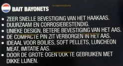 Onze Bait Bayonets maken het verwisselen van uw haakaas makkelijker en sneller dan ooit tevoren. Door simpelweg het bayonetje in uw haakaas te draaien bent u ervan verzekerd uw haakaas veilig, stevig en snel te bevestigen.