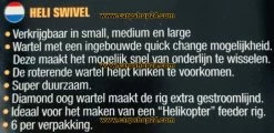De Heli Swivel is ontworpen om een knoop en twistvrije montage te creëren tussen de hoofdlijn en onderlijn. Ook is het bevestigen en verwisselen van onderlijnen enorm gemakkelijk en snel.