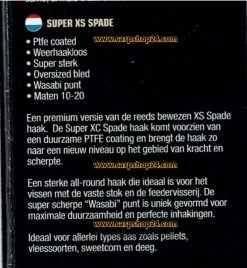 Een sterke all-round haak die ideaal is voor het vissen met de vaste stok en de feedervisserij. De super scherpe “Wasabi” punt is uniek gevormd voor maximale duurzaamhaid en perfecte inhakingen.