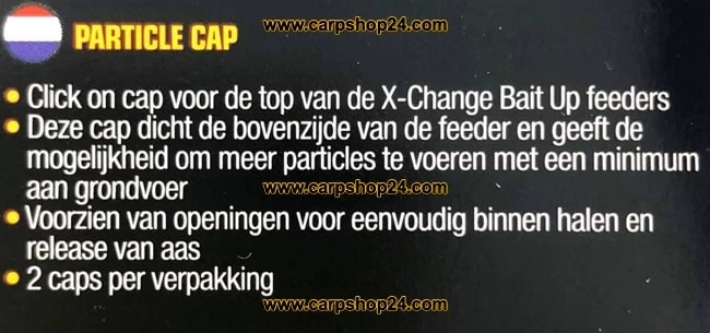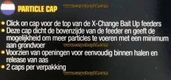 Deze particle caps zijn snel en eenvoudig op de X-Change Bait-Up Feeders te klikken en zijn verkrijgbaar in één maat die geschikt is voor zowel de middelgrote als de grote Feeders.