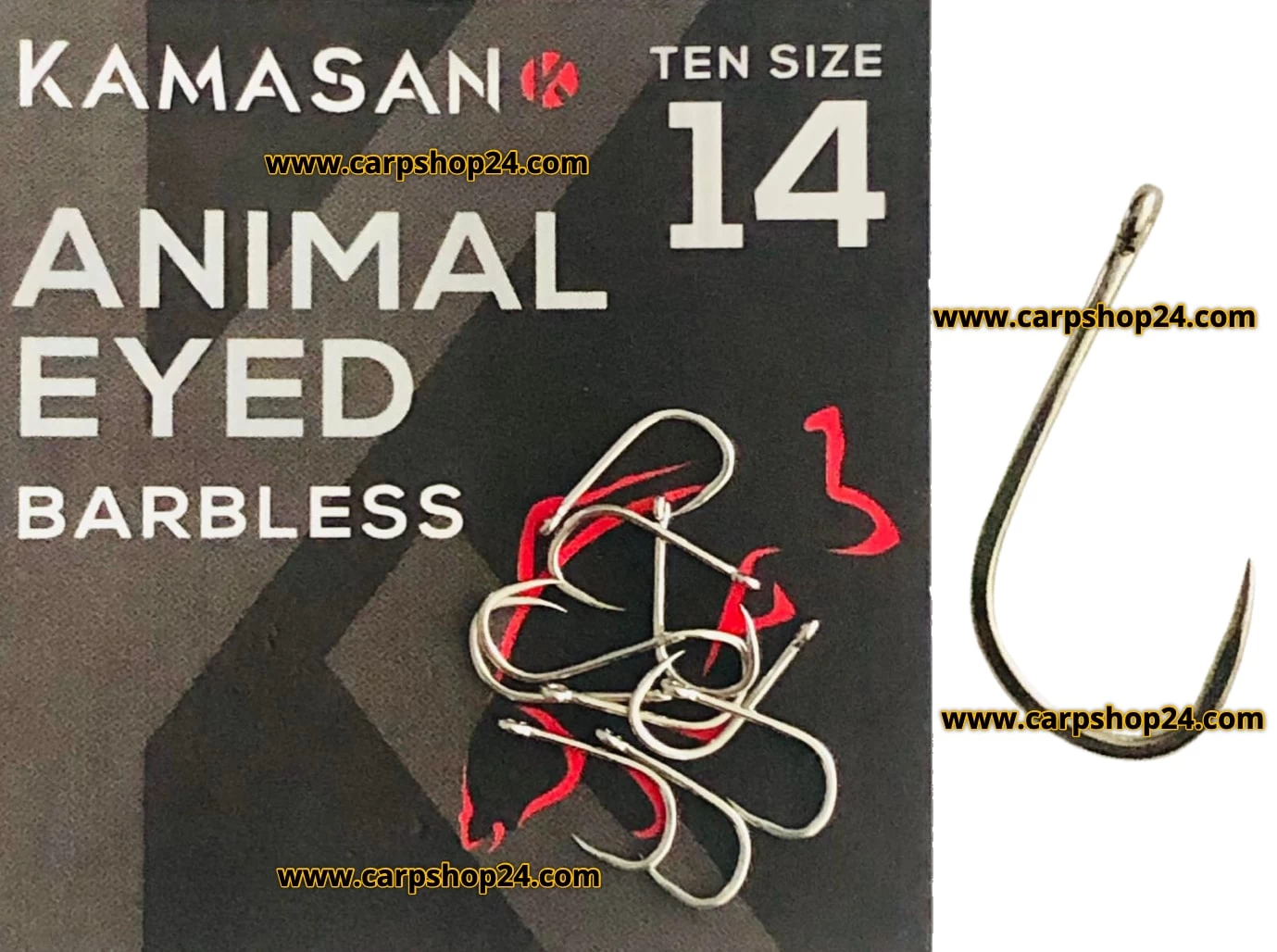 | Kamasan Animal Eyed Barbless | Maat 10, Maat 12, Maat 14 |