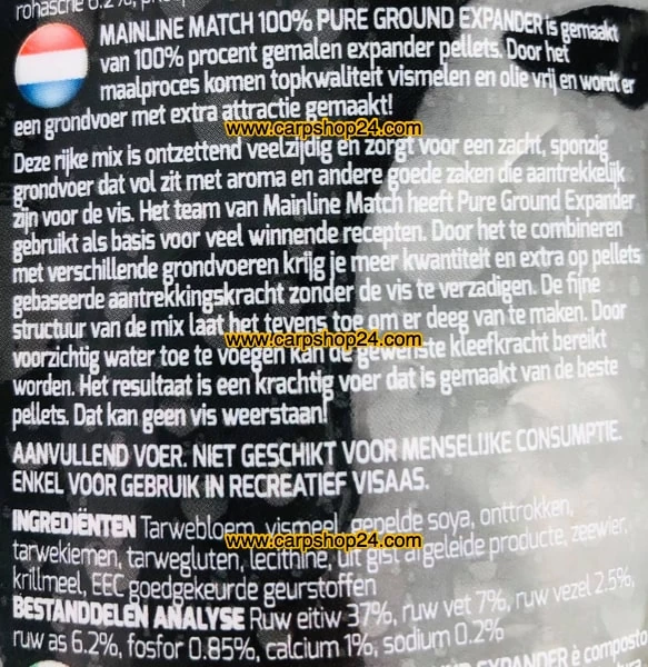Het team van Mainline Match heeft Pure Ground Expander gebruikt als basis voor veel winnende recepten, gecombineerd met verschillende soorten grondaas in het assortiment om ze meer kwantiteit te geven en die extra aantrekkingskracht op pellets zonder de vis te overvoeren. De fijne textuur van de mix maakt het ook ideaal om als pasta te gebruiken, die voorzichtig met water kan worden gemengd tot de door jou gekozen consistentie is bereikt.