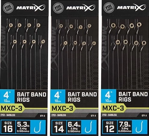 Matrix MXC-3 Bait Band Rigs Eyed Barbless 4″ – 10cm – Onderlijnen – 3 Maten