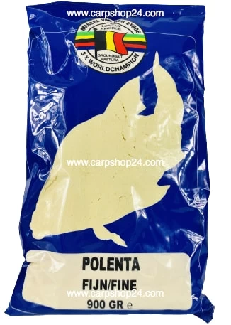 Polenta is de versneden maïskorrel, er zijn diverse soorten. De kleur van polenta hangt af van de gebuikte soort maïs. Zelf geef ik de voorkeur aan een gele tegen oranje achtige polenta. Daarbij heb je grove polenta en fijne polenta, de zogeheten Italiaanse polenta en polentabloem. De grove polenta gebruik je in diep, stromend water. De fijne (Italiaanse polenta) gebruik je in ondiep, stilstaand en langzaam stromend water. Deze polenta is licht kleverig, zal het voer iets verzwaren en toch makkelijk uiteen laten vallen. De polentabloem is zeer fijne, poederachtige polenta. Dit wolkt uitstekend en laat je voer makkelijk uiteenvallen. Voor het vissen in vijvers ideaal. Polenta is een basisbestanddeel in je voer.