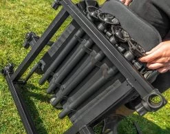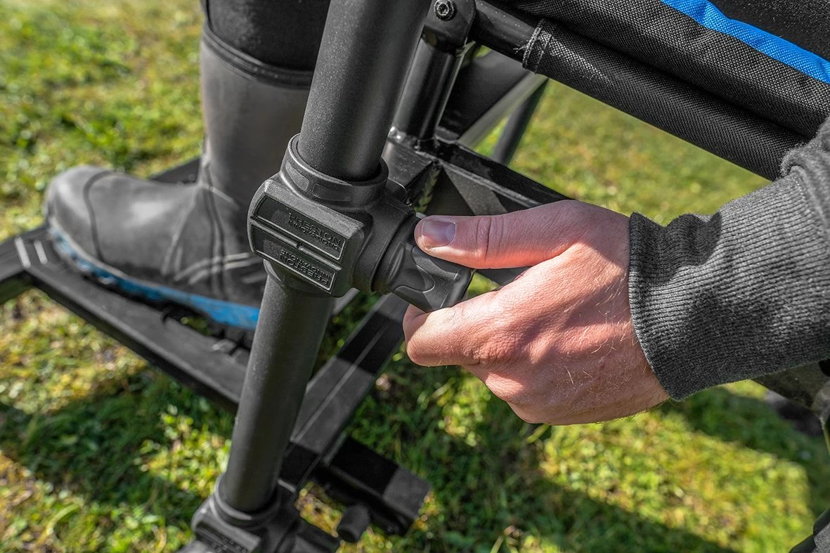 Zoals de naam aangeeft is de stoel ideaal voor feedervissers, waarvoor stabiliteit van groot belang is wanneer ze er lange hengelsteunen aan bevestigen.
