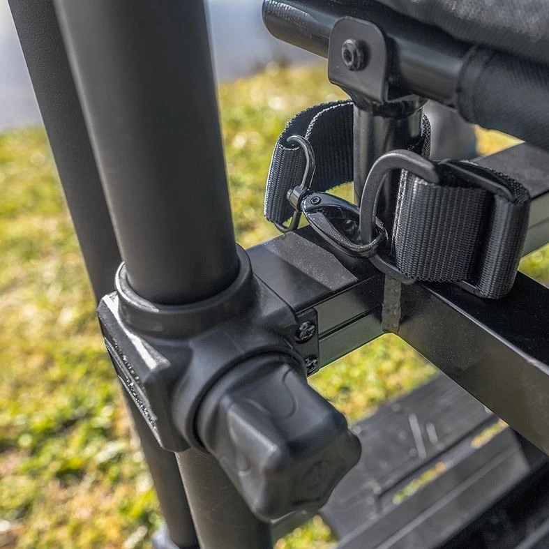 De Absolute 36 Feeder Chair is super stabiel en wordt geleverd met vier 36 mm poten plus twee extra 36 mm steunen, zodat je hieraan elk OffBox accessoire inclusief de aastafels met dubbele bevestigingspunten aan kunt brengen.