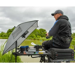 Het hengelsteun-scharniergewricht is compatibel met de OffBox Bat Brolly stang.