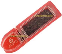 Stotz is een hybride shot dat is ontworpen voor gebruik op lijnen met een grotere diameter (ze werken ook perfect op fijne diameters). Door de brede groef zijn ze snel en eenvoudig op de lijn te plaatsen. Een ander voordeel is het grotere oppervlak dat de lijn vastgrijpt. Dit voorkomt schade en voorkomt ook dat de Stotz onder spanning pingelt. De platte uiteinden van Stotz produceren een nette massa wanneer ze samen worden gegroepeerd.