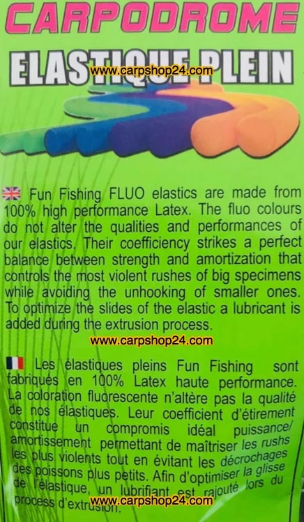 De Fun Fishing elastiekjes zijn gemaakt van zeer sterk latex. Hun oppervlak wordt beschermd door een dun laagje siliconen, wat hun glijvermogen en hun levensduur verbetert. Ze zijn sterk en betrouwbaar en zijn bestand tegen de gewelddadige stormloop van grote exemplaren terwijl ze de kraampjes van kleinere vissen vermijden.Om uw keuze te vergemakkelijken, is een globale kleurcode tussen de connectoren, de tulpen en de elastiekjes geïmplementeerd.