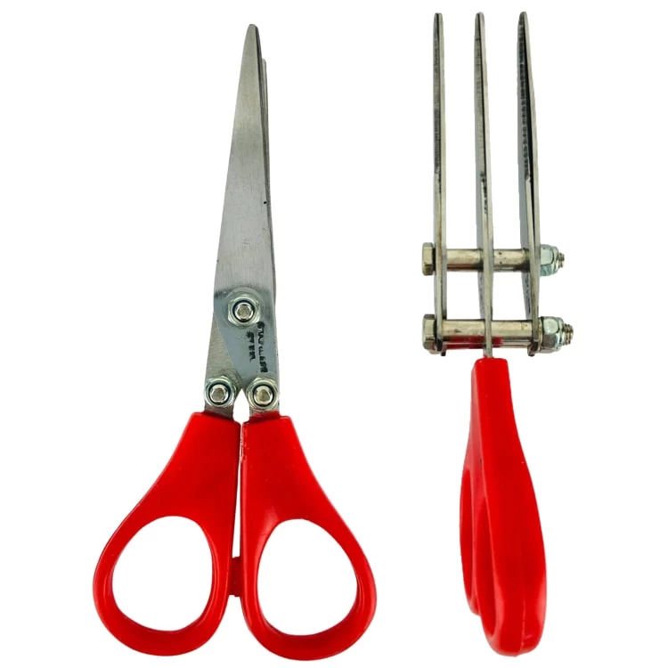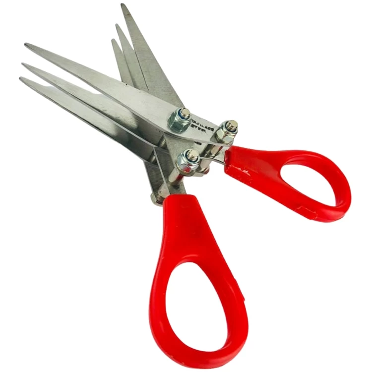 Speciale pierenschaar van hoge kwaliteit ontworpen om wormen in één keer in drie delen te snijden.